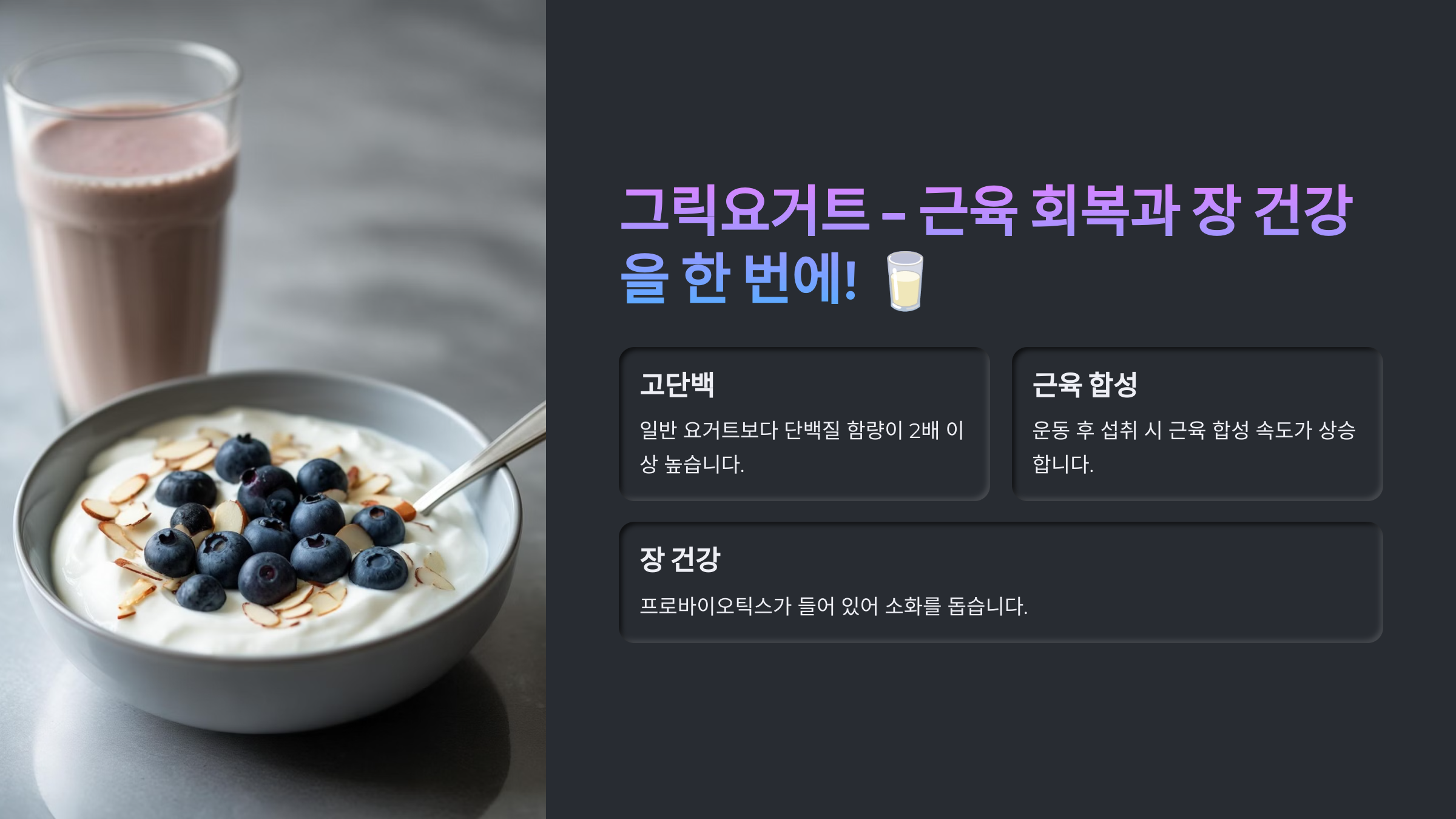 근육 회복엔 고단백 저지방 요거트가 짱입니다!